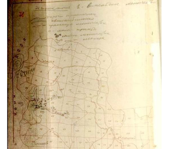 Рис. №32. Даёт представление о направлениях. Более отчётливо отмечен безлесный участок и расположение кедра.