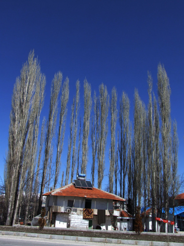 В устье широкой пустой долины почти на трассе выросла крошечная деревенька Согут (Söğüt), что в переводе с турецкого означает «ива», но заросшая нестриженными тополями. Здесь расстаемся с турагентом, потому что наш маршрут сворачивает в направлении Фетхие. К слову, вспоминаем с Изой, как пару недель назад, когда мы направлялись в Анталью, именно здесь в Согуте вместе с нашим оптимизмом температура воздуха упала до -11С. А теперь солнце припекает, хочется снять верхнюю одежду.