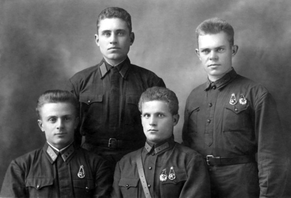 Курсант полковой школы 193 стрелкового полка Александр Полещуков с сослуживцами. Тюмень. 1936 г.