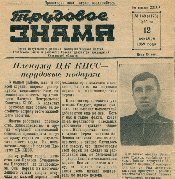 Фактически все нити руководства редакцией находились в партийных руках, и это считалось само собой разумеющимся. По скромному должностному положению я не представлял себе, каким образом райком влиял на содержание газеты. Наверное, первый секретарь райкома партии товарищ Савельев на заседаниях бюро райкома или в другое время давал конкретные указания редактору товарищу Иваненко, особенно во время важных хозяйственных кампаний. В результате на первой полосе очередного номера «Трудового знамени» появлялась крупно набранная шапка, что-нибудь вроде «Все силы на заготовку кормов!» или «Без потерь уберём урожай первого года семилетки!». Наверное, редактору приходилось иногда получать нахлобучки и выслушивать замечания по поводу отдельных публикаций. Однако это были не более чем обычные рабочие отношения. Увольнений и преследований коллег на моей памяти не случалось. Лично я никаких указаний о чём и как писать от партийных работников не получал.
