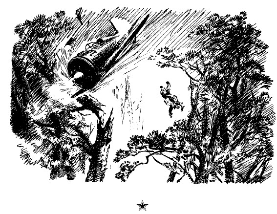 Развязка наступила сразу. Мотор осекся и замолчал. Самолет, точно соскальзывая с крутой горы, стремительно понесся вниз. Под самолетом переливался зелено-серыми волнами необозримый, как море, лес… «И все-таки не плен!» – успел подумать летчик, когда близкие деревья, сливаясь в продольные полосы, неслись под крыльями самолета. Когда лес, как зверь, прыгнул на него, он инстинктивным движением выключил зажигание. Раздался скрежещущий треск, и все мгновенно исчезло, точно он вместе с машиной канул в темную густую воду.