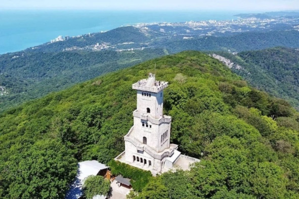 Высота башни 30,5 метра. По своему внешнему виду она напоминает средневековый замок. Интересно, что башня построена таким образом, что при подъеме на ее верхнюю смотровую площадку с каждым новым поворотом лестницы открываются различные панорамные виды. Бескрайние морские просторы сменяются видом на город Сочи, а затем перед взором открывается великолепная панорама белоголовых горных вершин, с которых берут начало местные реки.