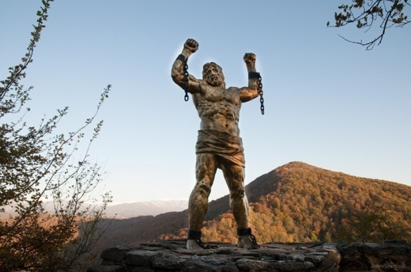 Старая кавказская легенда, посвященная Орлиным скалам, тесно переплетается с древнегреческой мифологией о Прометее.