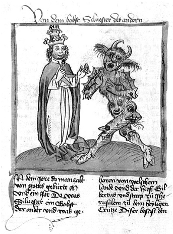 Рис. 1–1 «Сильвестр II и дьявол» (из средневековой рукописи).