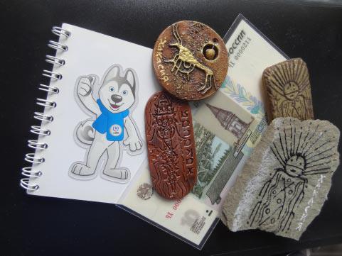 В аэропорту «Емельяново» пришлось закупать сувенирку. И ведь зарок давал: приобретать магнитики заранее, но вот опять отправляюсь в Москву, позабыв о презентах. С заграницей проще: десятирублевки закатал в пластик – вот вам красноярские флаеры. Итак, что же прикупить? Я выбрал изображения сибирских языческих существ: каменные личины, солярные знаки, наскальные пиктограммы…
