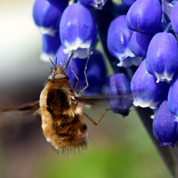 Около кистей кружило жёлто-коричневое насекомое, нечто среднее между мухой и пчелой, с длиннющим хоботком, который оно поочерёдно засовывало в распустившиеся бокальчики цветов. Насекомое подражало колибри, то есть не садилось на цветок, а зависало около него в стоячем полёте, отчаянно трепеща крыльями и бережно охватив лапами цветочный бокал с райским напитком. Новоявленный «колибри» меня заинтересовал, я его сфотографировал и забил в интернет запрос: «Насекомое, похожее на муху с длинным хоботком, питается нектаром». За что люблю интернет, так это за то, что на любой, даже самый непонятный вопрос он даёт совершенно правильный ответ. Толковые поработали программисты. Видимо, мой вопрос оказался не самым бестолковым, хоть и длинным. Среди первых фотографий, вываленных всезнающим гуглом, нашёлся снимок с моей симпатичной мушкой. Имя оказалось просто потрясающим: жужжало! Я немного посмаковал вкусное словечко. Но учёные не были бы учёными, если бы не пристроили к имени ещё и определение. В нашем случае им оказалось словцо, очевидно, наполненное многими смыслами, теснившимися в голове человека науки, но для человека, далёкого от энтомологии, невероятно неочевидное, несущее в себе бездну иронии: жужжало большой. Жужжало на самом деле жужжал, но едва слышно по очень простой причине: габариты двукрылого ненамного превышали размеры вообще-то крохотного бочонка мускари.