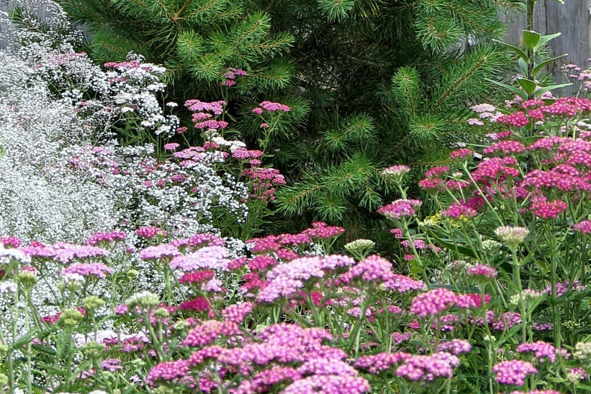 Отцвели летнецветущие спиреи. Зато примерили сиреневые и белые юбочки эхинацеи, разрослась, набрала мощь петуния – сад по-прежнему раскрашен ярко и празднично. Расцвела и нигелла дамасская, лёгкая и безгрешная, как пасмурный денёк в череде изнуряюще знойных. Юная душа в ласковом родительском гнезде из тонких ниточек-листочков. Она больше достойна другого своего имени – девица в зелени.