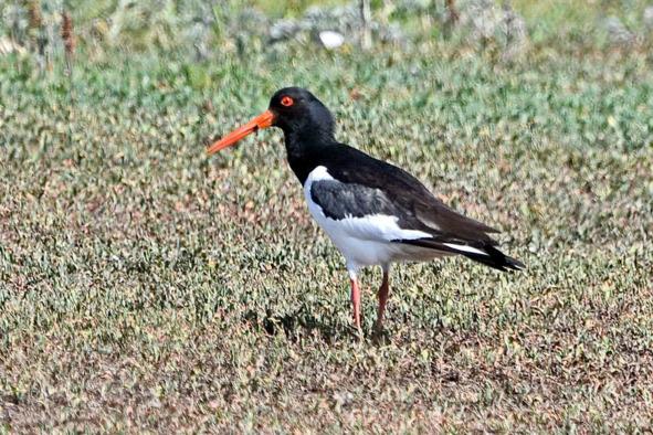 Путь мой продлился вверх по течению речки. Чувствовалась заповедность, нетронутость местности. По полянке у пыльника в поисках пищи прогуливался кулик-сорока – осторожная чёрно-белая птица с длинным ярко-красным клювом и такими же красными глазами, казавшимися особенно большими ещё и потому, что по краям век нарисовано оранжевое кольцо. Не ждал гостей, уставился на авто в недоумении, позволил себя сфотографировать. Рацион у куликов разнообразный. При этом птицы сообразительны и проявляют замечательные охотничьи навыки. Ловят мелкую рыбёшку подобно цаплям. Насекомых добывают даже из-под камней, подсовывая клюв под камень или переворачивая его. В сезон лакомятся ягодами. Могут украсть из чужого гнезда яйца. Панцирь ракообразных разбивают клювом, а раковины моллюсков засовывают в трещину в скале, как дятел шишку в щель на дереве, а затем ловко её вскрывают. Наблюдательные жители Британских островов нарекли птиц ловцами устриц.