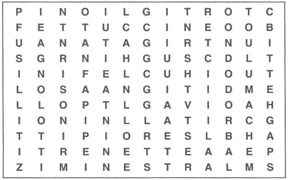 Помните, что в нашей игре вам нужно сначала перевести заданные слова на итальянский язык, а потом уже найти их на игровом поле. Удачи!