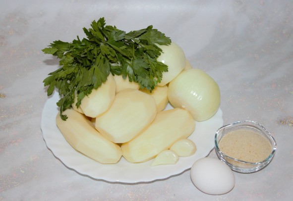• Выложить на нее слоями в следующей последовательности: картошка, соль, лук, чеснок, картошка, соль, лук, чеснок, картошка