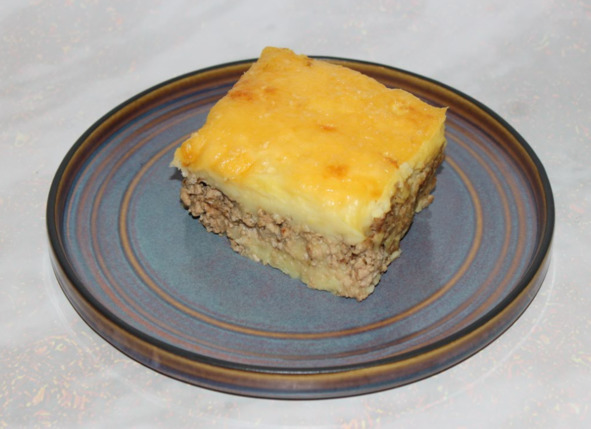 • Выложить нижний слой пюре, далее фарш и снова пюре