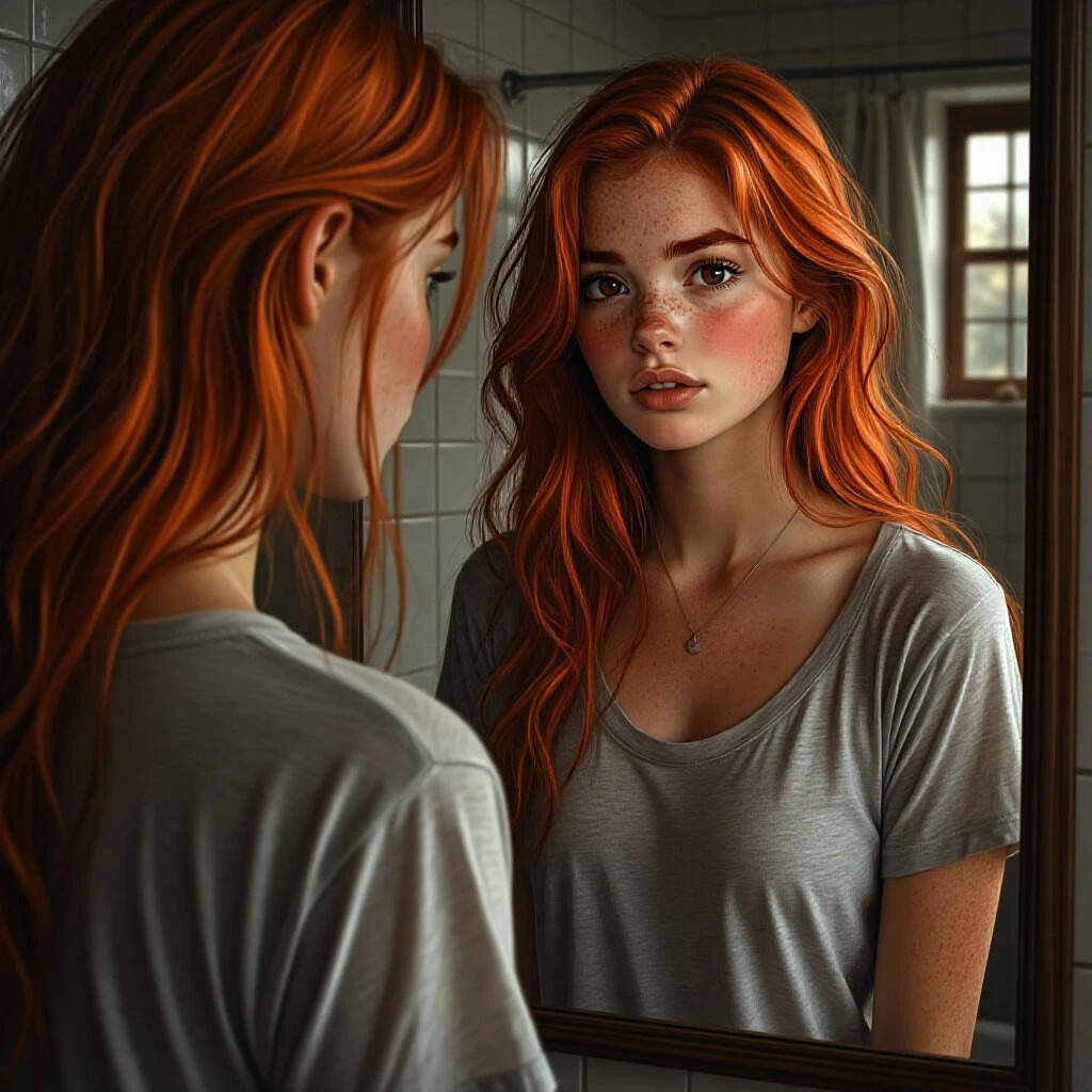 Постояв ещё минутку и выключив ночник, она решила начать с похода в ванную. Ей пришлось остановиться у зеркала, распутывая длинные рыжие локоны. Казалось, за ночь они отросли ещё больше.
