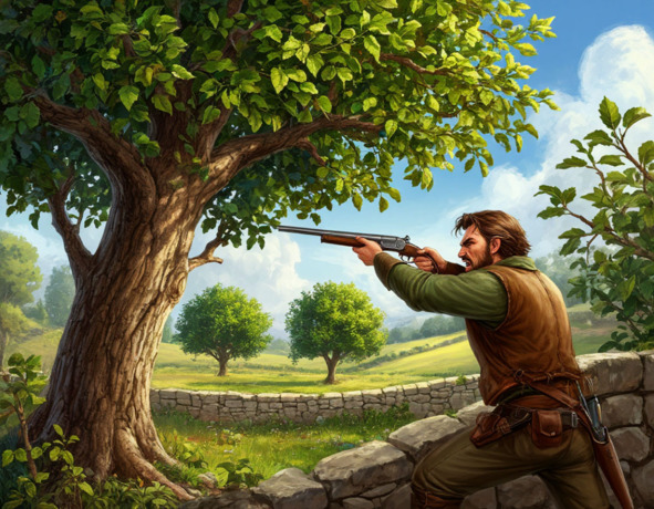 Он вернулся в дом, схватил ружьё и вышел в сад. Обезьянка, увидев оружие, испугалась – она метнулась в сторону, но Маниш уже прицелился. Выстрел грянул, но ветки помешали – пуля лишь задела лапу обезьянки. Та взвизгнула от боли, схватилась за рану и помчалась прочь, перепрыгивая с дерева на дерево.