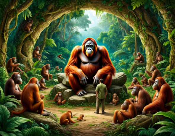 Джунгли шумели, как огромный зелёный океан, переливаясь под жарким солнцем всеми оттенками изумрудного и золотого. Густые кроны деревьев сплетались в непроницаемый полог, сквозь который лишь кое-где пробивались лучи света, падая на землю золотыми пятнами. Воздух был густым, сладким от ароматов цветущих лиан, спелых манго и дикого жасмина. В ветвях перекликались попугаи, а где-то вдалеке, в чаще, слышался рёв обезьян – они прыгали с ветки на ветку, будто играли в нескончаемую игру.