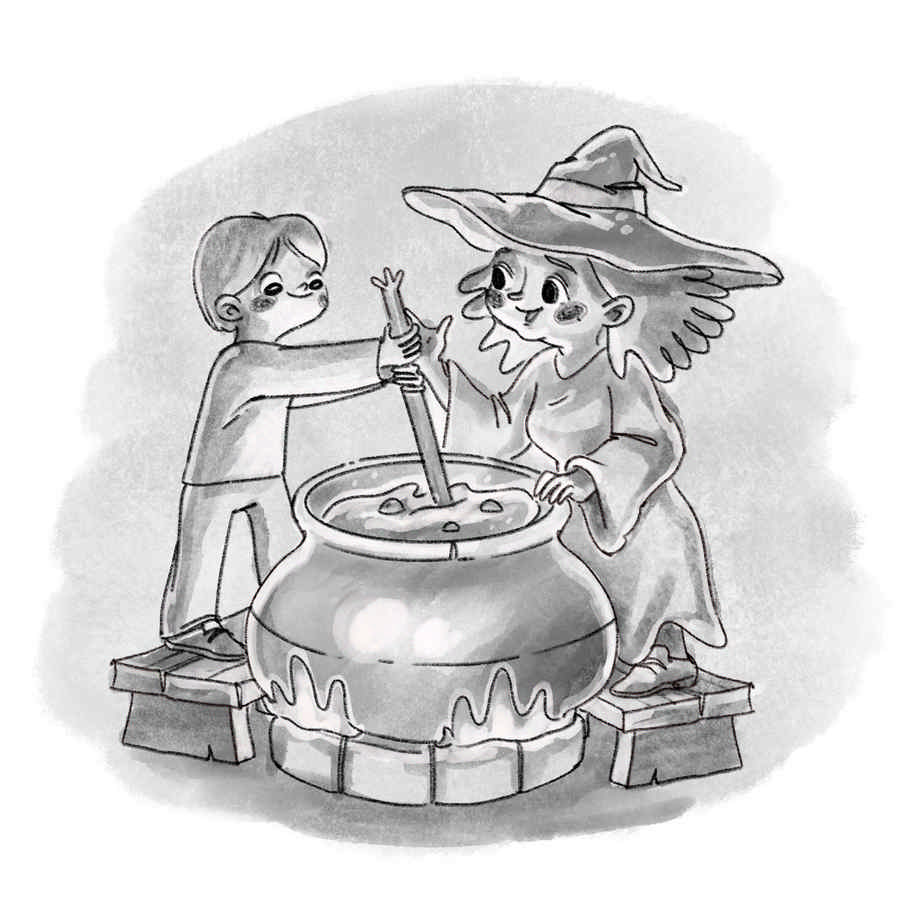 – Сейчас, – сказала тётушка значительно, – в этом котле мы сварим Волшебное Зелье. Вы его выпьете, и ваш Павлик обретёт полезные человеческие качества. Благодаря этим качествам он будет расти счастливым и, когда вырастет, заслужит уважение и любовь других людей. Он будет радоваться жизни и совершать только хорошие поступки. Кстати, вы сможете скоро узнать, каким человеком станет Павлик – какой у него сформируется характер и какую профессию ваш мальчик со временем полюбит больше всего на свете. Ведь вы хотите это знать?