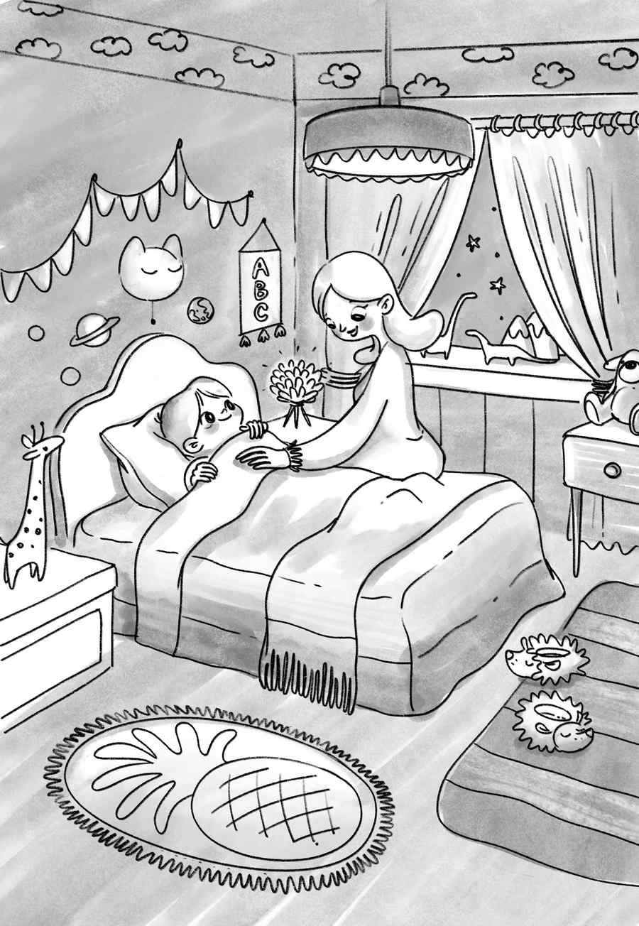 Мама сразу поняла, что её сыну не спится. Она присела на край кровати и положила прохладную руку на голову мальчика.