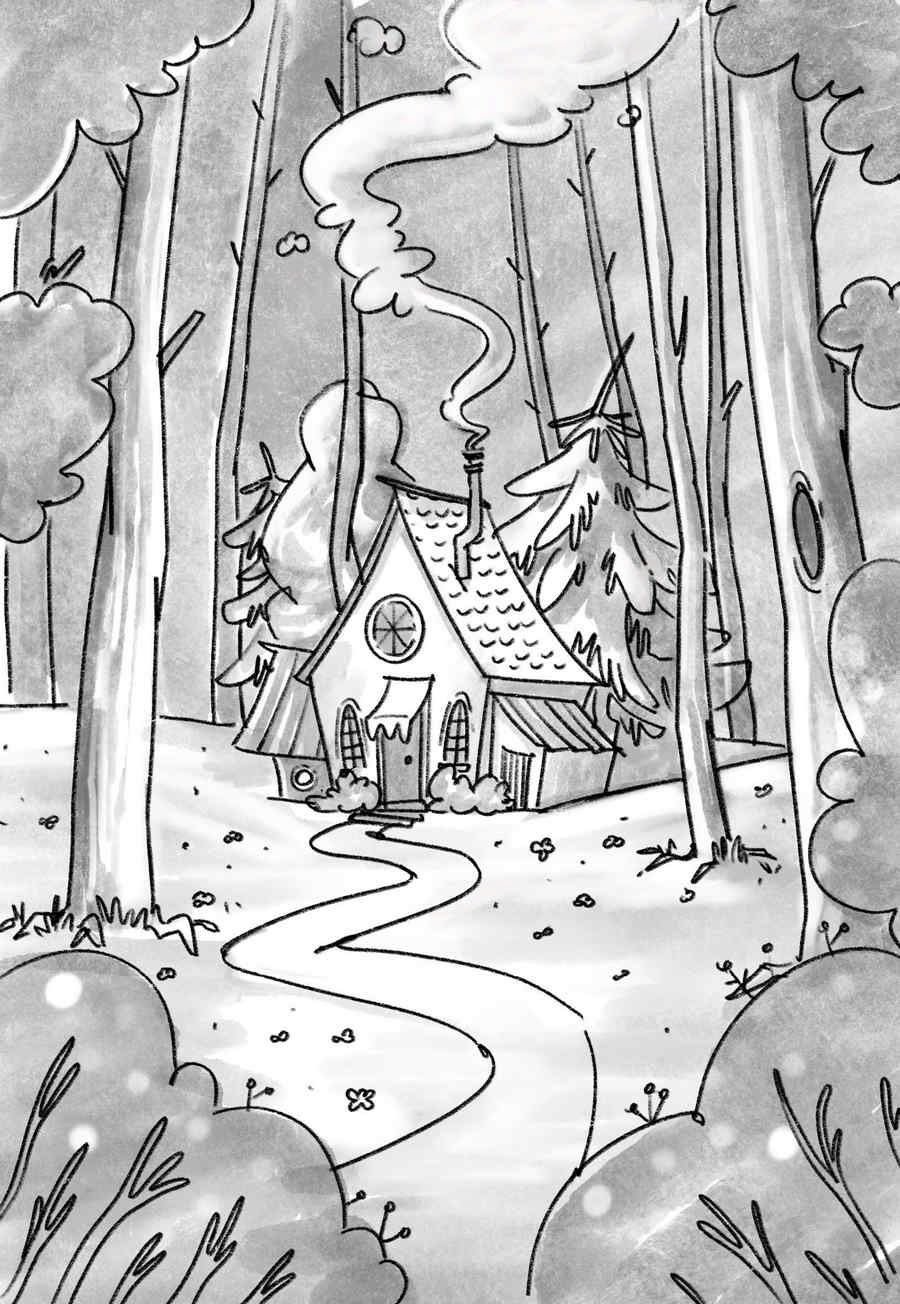 – Я сама удивилась, – сказала мама, – но факт остаётся фактом: я очутилась в сказочном лесу. Вокруг стояли высокие деревья. Было темно. Только лунный свет освещал узкую извилистую тропинку. Мне стало любопытно, и я пошла по этой тропинке в глубину леса. Вскоре я вышла на большую поляну, посреди которой стоял домик – аккуратный, с крышей из черепицы. Как у бабушки Веры на даче. Помнишь?