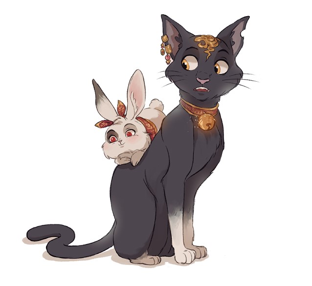 В качестве ответа появилась Суйка, черная кошка с белыми лапами, на которой Момо, животное-фамильяр Кат, отдыхал, словно кошка была его королевской каретой. Момо был белым кроликом с милым темным пятном над правым глазом. Кат назвала его в честь фрукта и решила сделать то же самое для своих кошек[2]. Если бы Кат и ее мама взяли еще кошек, им пришлось бы начать изобретать новые фрукты. Кибиби слегка покачала ногами, давая понять Мерону, что хочет встать, но кот только зевнул и положил голову ей на колено, намереваясь вздремнуть. Вздох-