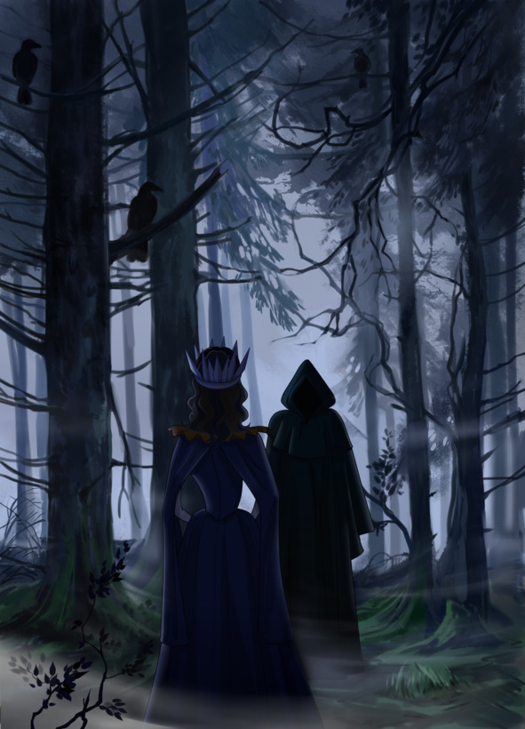 В лес злодейка поспешила;Через реку (по бревну)Прямо в чащу, в глубину.Там она его позвала:«Выходи, колдун, ко мне» —И полночи дожидалась,Чуть уже не засыпала,Но раздался наконецГолос хриплый в тишине.«Знаю я, чего ты хочешь.И тебе я это дам». —«Ну а что взамен попросишь?» —«Ничего сейчас. Но позжеСнова ты придешь сюдаИ расплатишься тогда».«Выбирай же – ты согласна?» —Прозвучало средь теней.«В чем подвох? Иль все прекрасно? —Мысли прям перед соблазном. —Ладно, хриплый старый змей.Ты хитер, но я хитрей».«Да», – ответила хитрица.«Утром ты тогда должнаК королю на чай явиться,Кроткой, нежной притвориться.Будешь ты удивлена». —И простыл след колдуна.И наутро, в свете солнца,В согревающих лучах,Как шедевр чудотворца,Так изящна, грациозна,Подошла она на чай —Сам король ее встречал.И она его сразила:Кроткий взгляд свой опустив,Улыбнулась, поклонилась,Красотой своей пленила.Щечки скромностью залив,Ласку, нежность подарив,Своего она добилась.А как минуло два дня,С королем уж трон делила,Стала властною, дерзила,Но все помня и теня,Тайну мрачную храня.