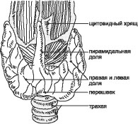 Наружная поверхность щитовидной железы выпуклая, а внутренняя, то есть та, которой железа как бы охватывает трахею и гортань, – вогнутая.