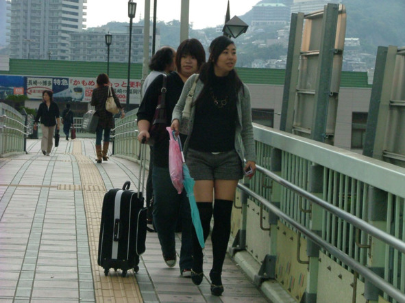 В наблюдениях за нагасакскими модницами мы пришли к выводу, что самая крутая мода здесь – шорты и высокие сапоги, чаще всего с меховой оторочкой. То есть полоска голого тела с живота, как это было принято во Владивостоке, здесь сползла на ноги. От географической широты зависит, или от чего другого, пока не знаем, не хватает базы наблюдений.