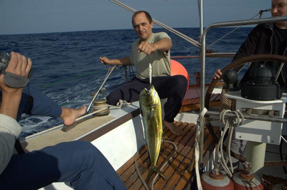 12—03. 28—15.77N, 128—19.77E. Поймали первую дораду. За сутки 106 миль.