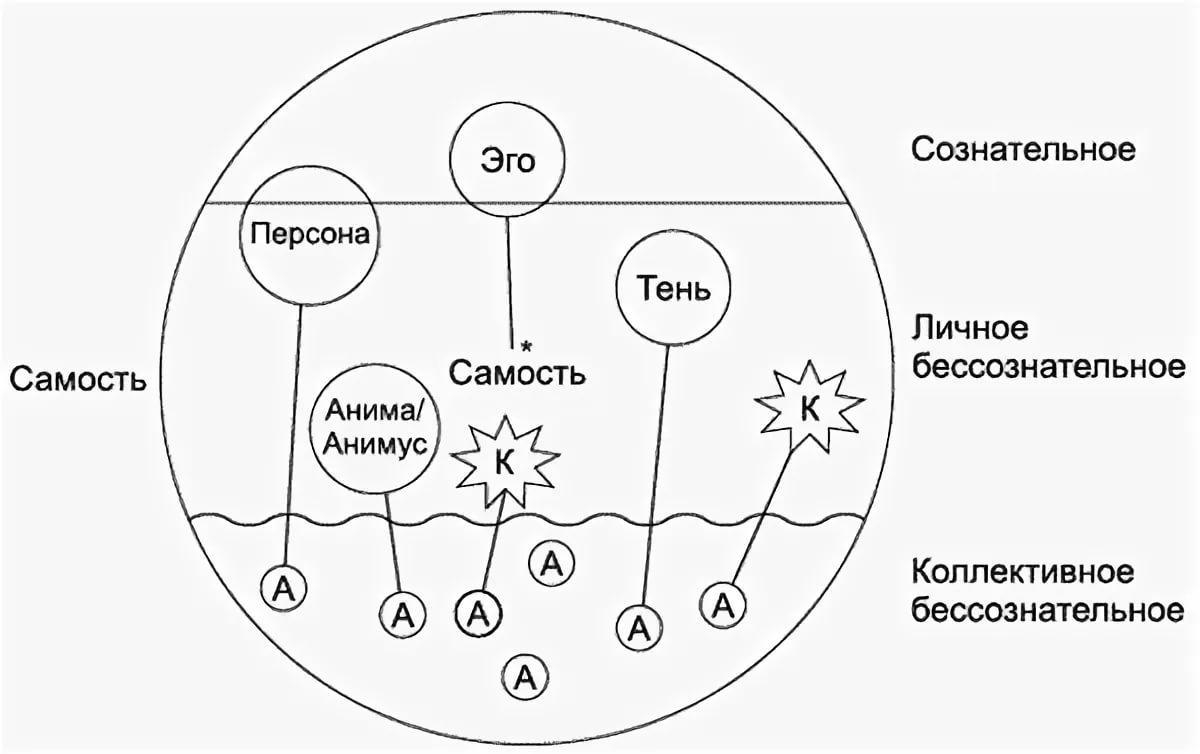 Если вы заметили, и комплексы, и анима / анимус, и персона, и тень – все имеют связь с Коллективным Бессознательным, и ещё с маленькими «кружочками», отмеченными буквой "А", которой обозначены АРХЕТИПЫ. Мы с вами будем разбирать каждую из этих структур.