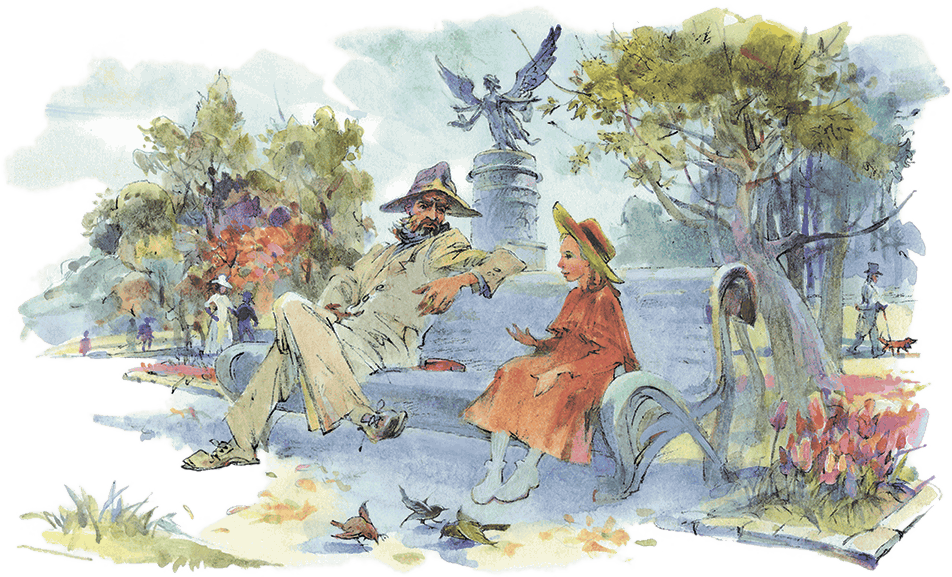 Заметив какого-то мужчину, сидящего неподалёку, девочка подошла и осторожно присела на противоположный край скамейки. В другое время она бы не задумываясь подвинулась к нему поближе и, весело поздоровавшись, предложила познакомиться, не сомневаясь, что незнакомец с радостью согласится. Но теперь, после неудачных попыток познакомиться, она немного оробела и только незаметно поглядывала на соседа.