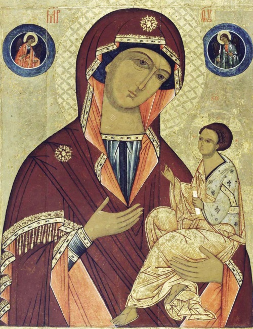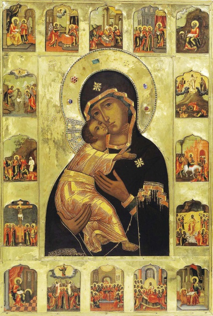 Люди искали новыми и новыми изображениями выразить переполнявшее их к Пречистой Деве чувство восторга и любви. Лучшие художники на своих полотнах старались в красках выразить слагавшуюся в их душе мечту о Пречистой Деве. В тихих кельях монахи-иконописцы изображали на темных досках в несовершенном по живописи, но дышащем верою и умилением образе лик Пречистой.