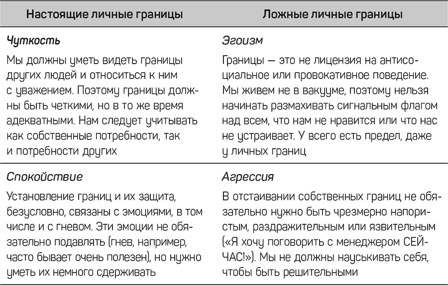 Далее мы рассмотрим, что является истинными личными границами, а что лишь маскируется под них.