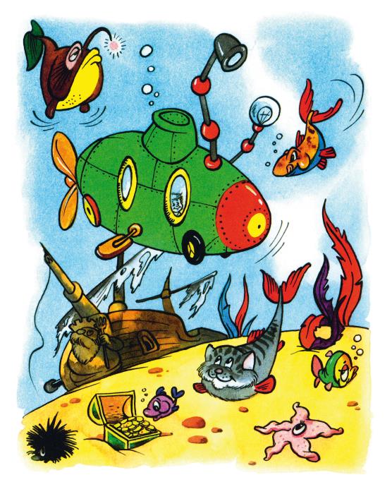 – Отличная мысль! – обрадовался Самоделкин и, нажав на специальную педаль, опустил подводную лодку почти на самое дно – туда, где обитают самые необычные рыбы.
