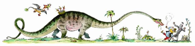 – Эти динозавры, наверное, были размером с трёхэтажный дом, – сказал пират Буль-Буль. – Да, такого палкой не испугаешь.