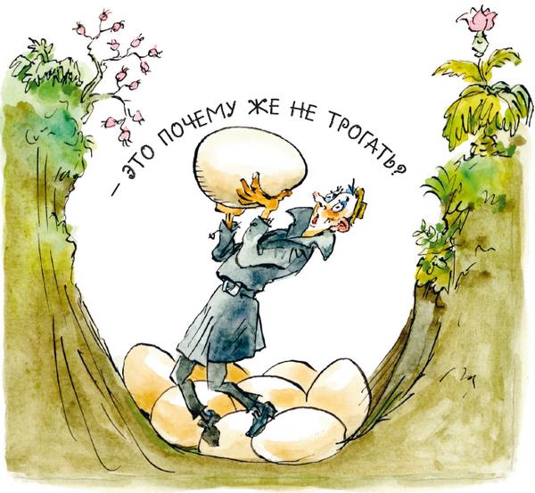 – Это почему же не трогать? – расхрабрился Дырка. – Давайте приготовим из них огромную яичницу. Сейчас я достану из ямы самое огромное яйцо… Ух, какое тяжёлое, его на всех хватит.