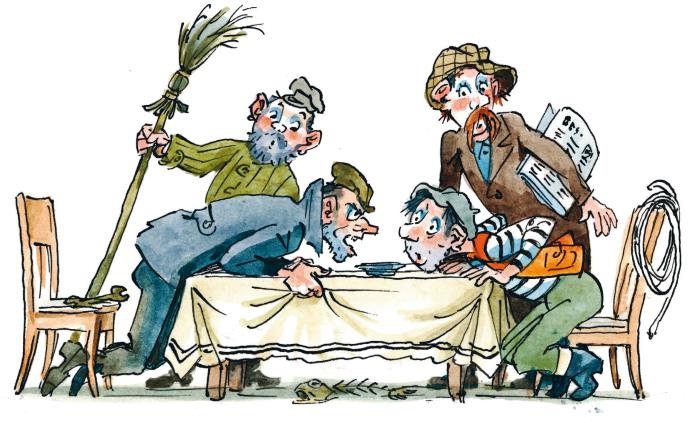 – Вот именно, эту газету я и разношу раз в неделю, – надулся усатый почтальон Плюшкин. – А тебе-то что надоело? Ведь в нашей деревне водопровода нет, одни колодцы, – спросил он своего приятеля, водопроводчика Индюшкина.