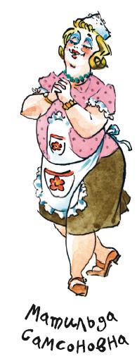 Дел у Матильды Самсоновны было невпроворот. Ведь она была не только буфетчицей, но и главным помощником директора гостиницы Сковородкина. И все главные хлопоты по хозяйству лежали на её хрупких плечах. Хотя, честно говоря, плечи у тёти Моти были не такие уж хрупкие. Да и сама Матильда Самсоновна была немного толстенькой. Или, если уж совсем честно, то очень толстенькой. В деревне её побаивались. Говорили, что у тёти Моти тяжёлая рука. А это значило, что под горячую руку ей лучше не попадаться.