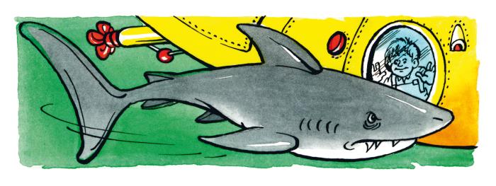 – Вдруг меня там какая-нибудь акула за нос цапнет, – трусовато поёжился шпион Дырка. – Уж лучше я здесь посижу и в окно посмотрю.