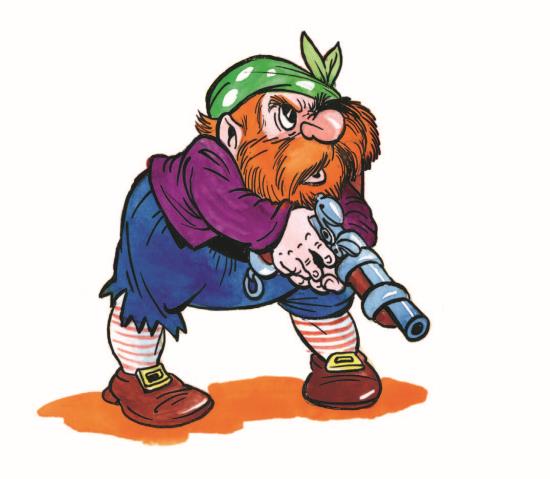 Неподалёку от маленьких волшебников жили два разбойника – толстый бородатый пират Буль-Буль и худенький длинноносый шпион Дырка. Они были злые, жадные и глупые. Больше всего на свете разбойники мечтали поймать Карандаша и заставить его рисовать для них всё, что они пожелают: золото, оружие, пиратский корабль и всякие вкусности.