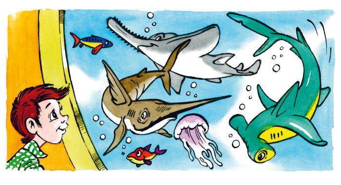 – Ты угадала, эта рыба так и называется – рыба-ёж, – сказал Семён Семёнович. – Колючками она защищается от врагов. Когда ей угрожает опасность, рыба-ёж вбирает в себя большое количество воды, превращаясь в большой шар, а потом с силой направляет струю на врага, – добавил профессор Пыхтелкин.