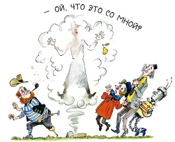 – Ну вот, снова я видимый, – огорчённо сказал разбойник, – так и не успел хорошенечко похулиганить. – И уже совсем тихо, чтобы его никто не услышал, добавил: – Только профессору спину мелом испачкал да Карандашу за шиворот гусеницу сунул.