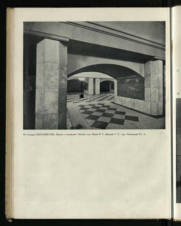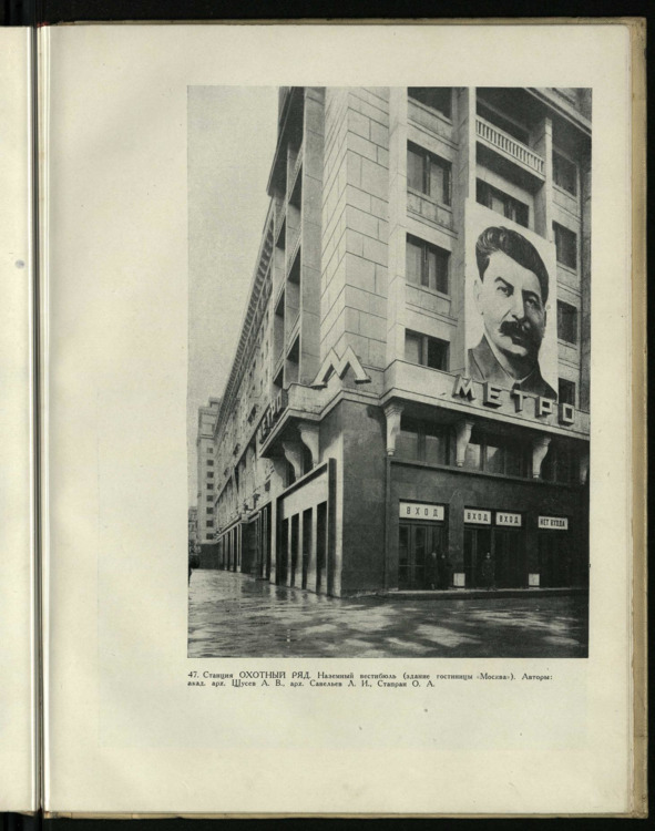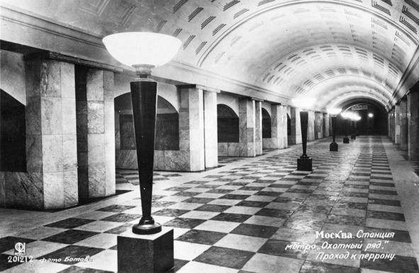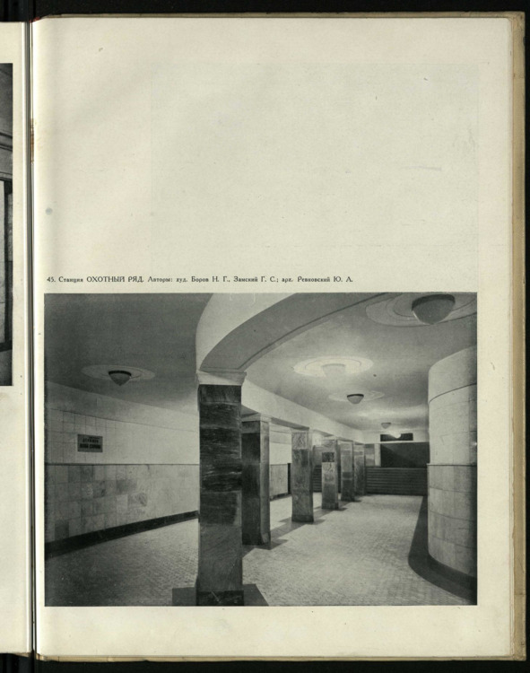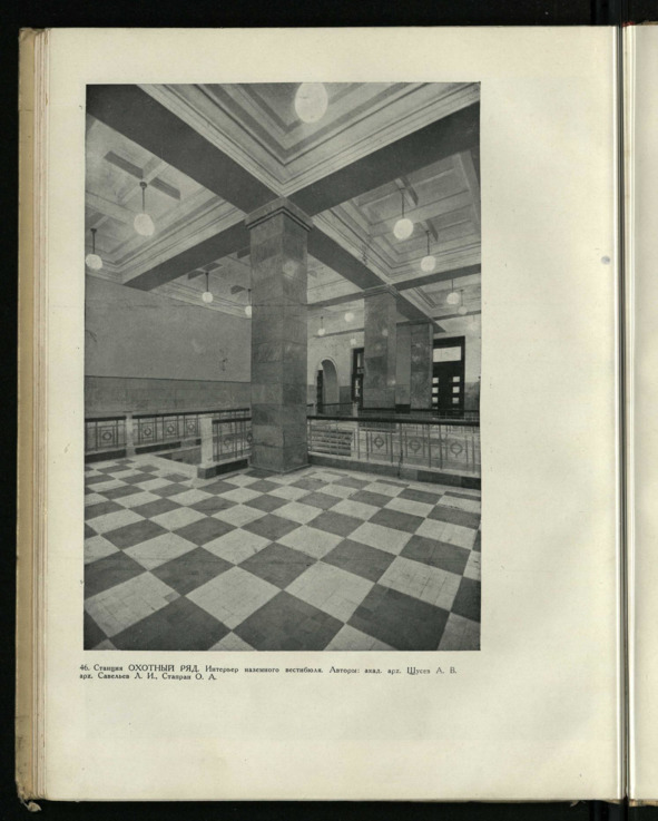 «Охотный ряд». Вестибюль в здании гостиницы «Москва». Из книги «Архитектура московского метро». М., 1936