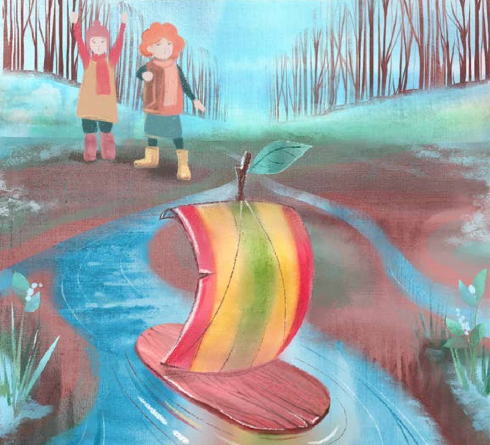 Марина и Юля часто играют, пытаясь на скорость добежать до дерева, перепрыгнув все ручейки и лужицы.