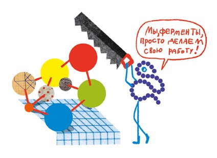 А откуда берутся углеводы, жиры и прочие вещества? Это очень хороший вопрос. Все они синтезируются в нашем организме, а также попадают в него с пищей. Особые белки – ферменты – помогают сложным молекулам распадаться на составляющие, из которых потом другие белки собирают нужные организму химические соединения.