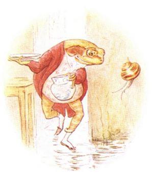 Мистер Джереми надел непромокаемый плащ и пару блестящих галош, взял удочку с ведерком и длинными-предлинными прыжками поскакал к местечку, где держал лодку.