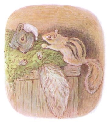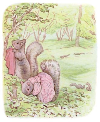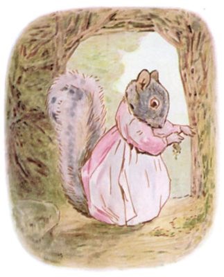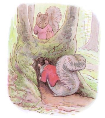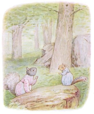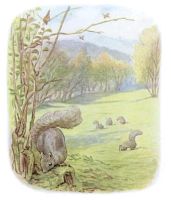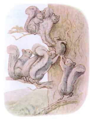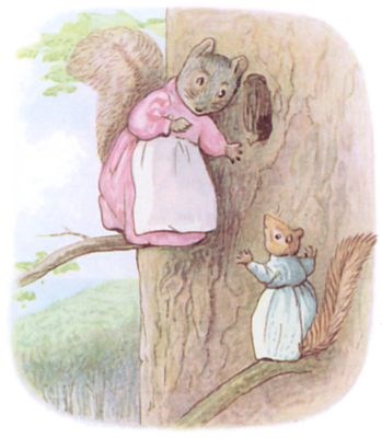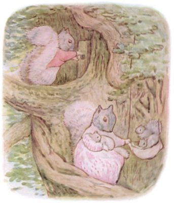 Once upon a time there was a little fat comfortable grey squirrel, called Timmy Tiptoes. He had a nest thatched with leaves in the top of a tall tree; and he had a little squirrel wife called Goody.