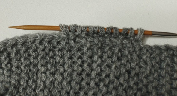 9 ряд: кромочная, 25 лицевых, прибавка из протяжки, 1 лицевая, прибавка из протяжки, 25 лицевых, 1 изнаночная