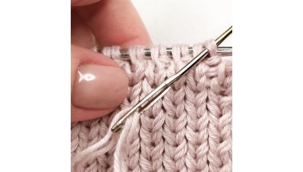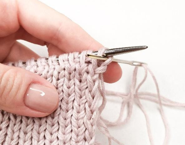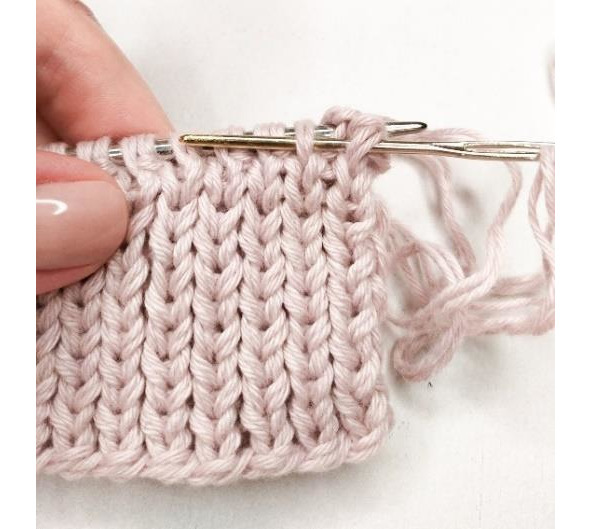 Будем попарно соединять лицевые и изнаночные петли: в лицевых в первую лицевую вводим иглу слева направо, а в следующую справа налево. В изнаночных наоборот: в первую справа налево, а в следующую слева направо.