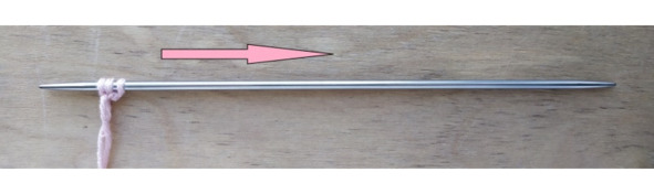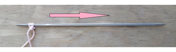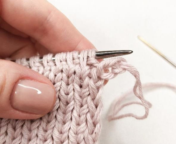 – Вводим иглу в изнаночную петлю справа налево, снимаем со спицы