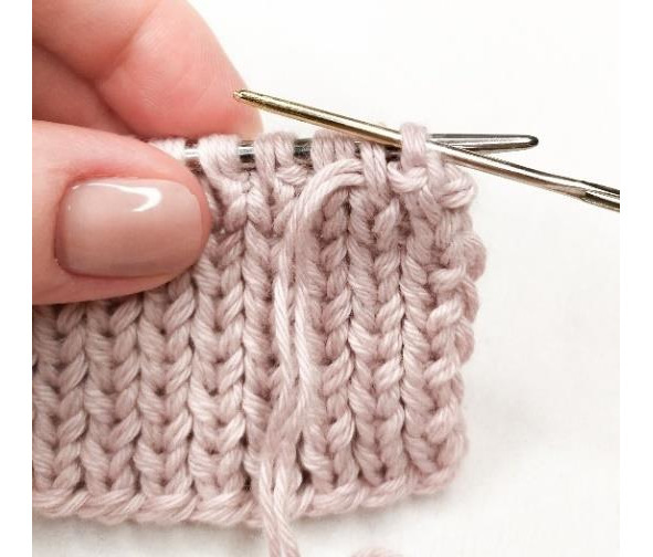 – Вводим иглу в лицевую петлю слева направо, снимаем