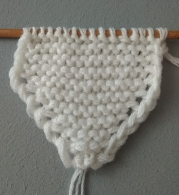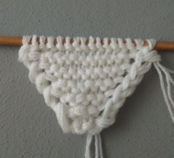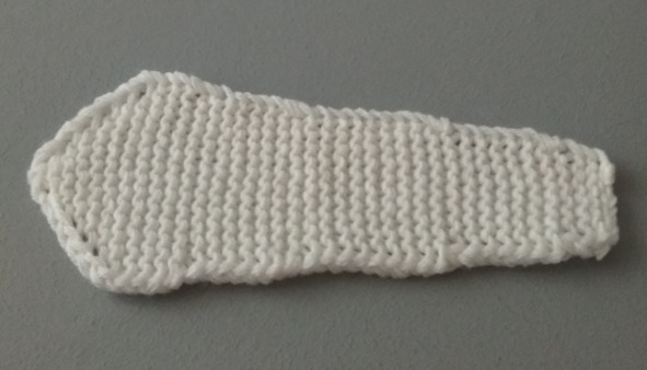 Закрываем 8 петель. Ушко готово. Аналогично вяжем второе ушко.