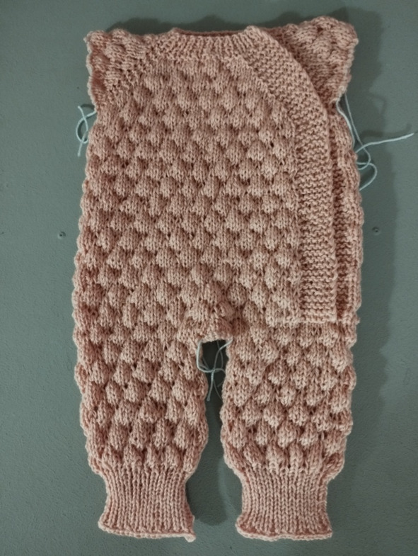 Проводим ВТО комбинезона, сушим на ровной поверхности, пришиваем пуговки. Комбинезон готов.
